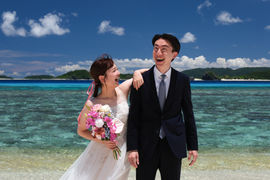 ケラマブルーと言われる青い海をバックに撮ります。